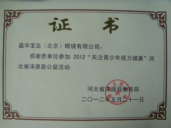 北京眼镜协会与中国眼镜协会共同开展了2012年“关注青少年视力健康”主题公益活动
