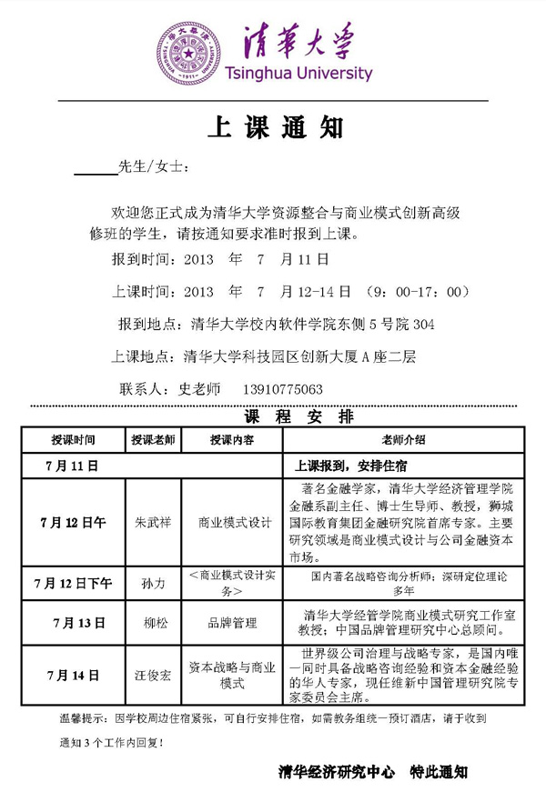 清华大学资源整合与商业模式创新管理课程开课通知