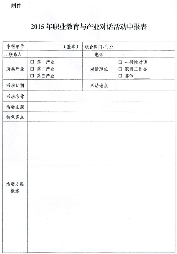 关于开展2015年职业教育与产业对话活动方案申报工作的通知