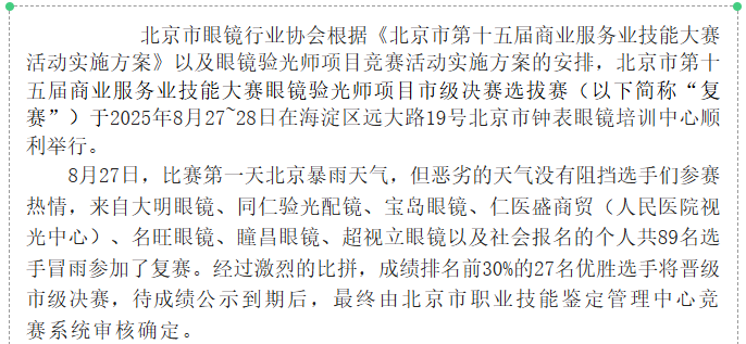 北京市第十五届商业服务业技能大赛眼镜验光师项目市级决赛选拔赛(复赛)圆满完成