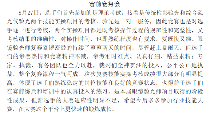 热烈祝贺北京赛区选手金小菊在第六届全国验光与配镜职业技能竞赛决赛中取得职业验光组季军